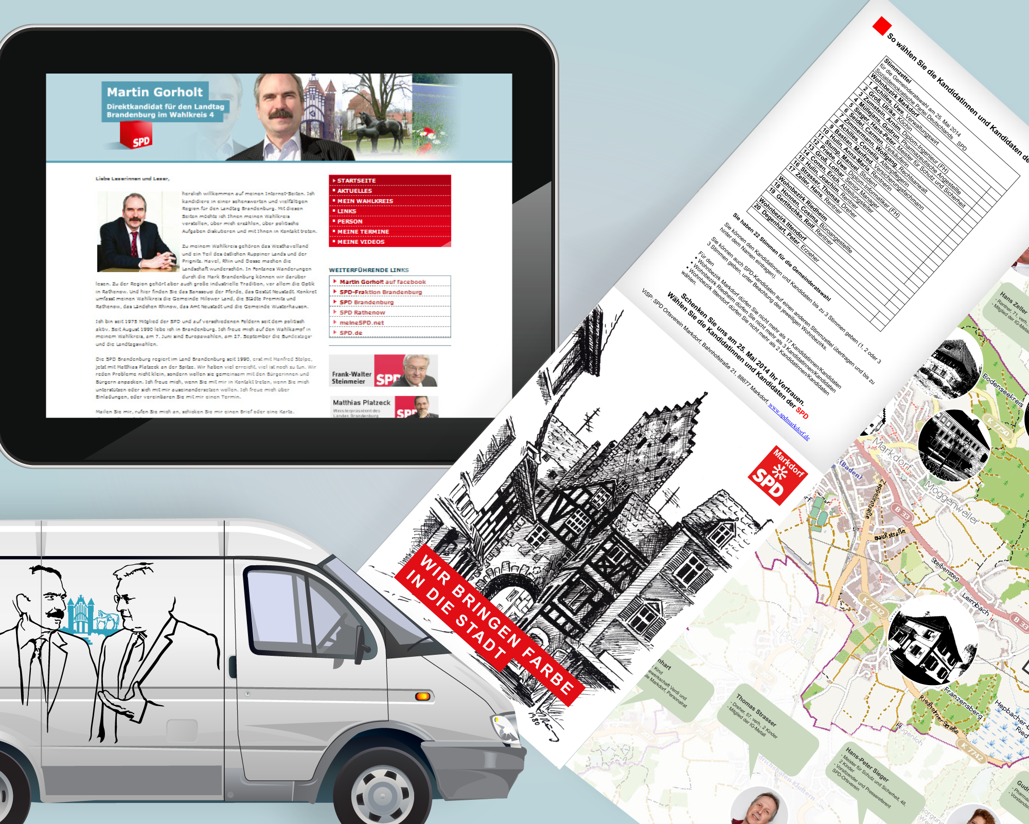 Entwicklung von Corporate Designs für Start-ups und Relaunches, Werbematerial für Bundes- und Landtagswahlen